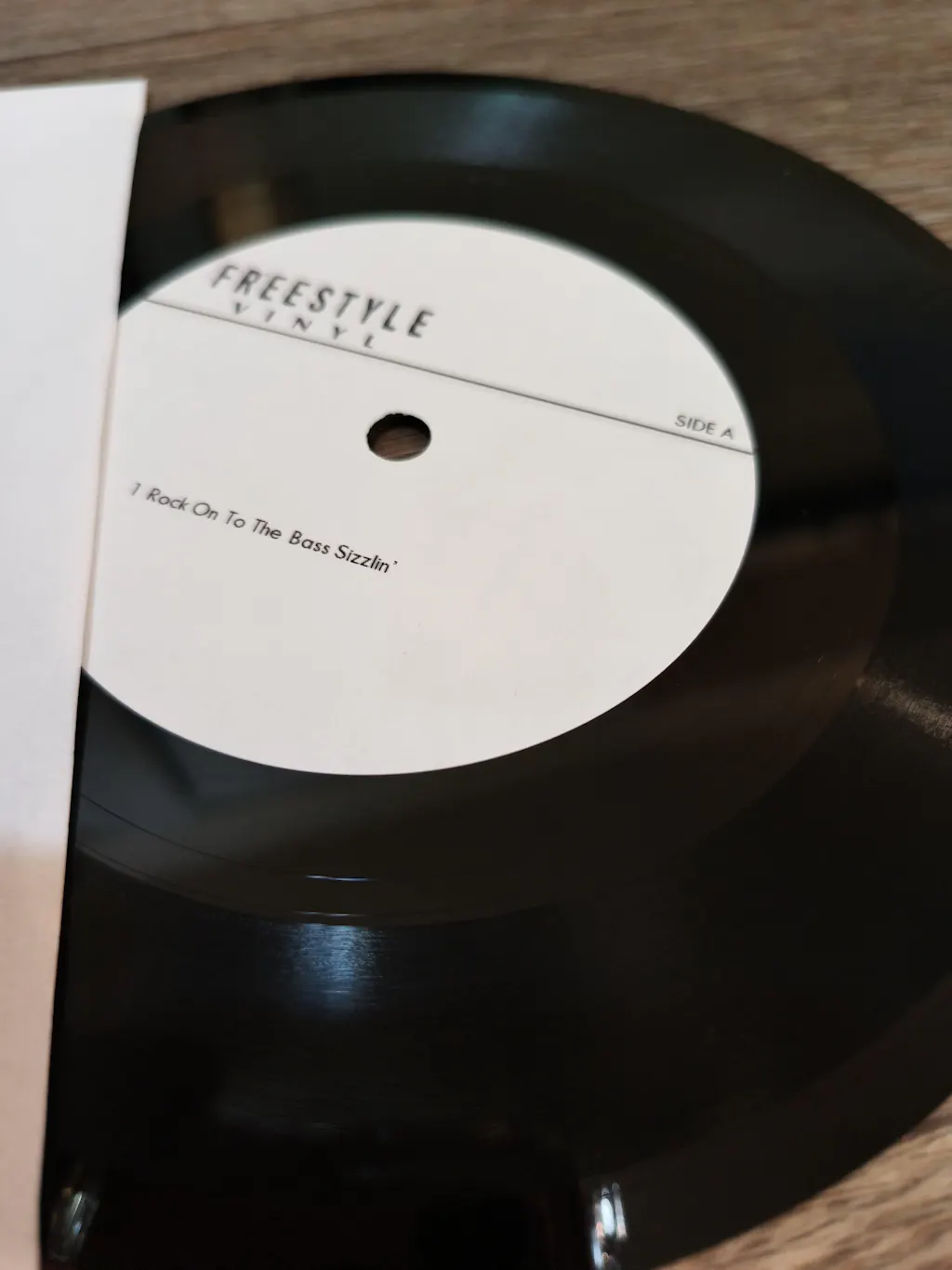 • Our 7" records are small (1/4") hole records. If you would like a large (1.5") hole vinyl (black vinyl only), email us at contact@freestyle-vinyl.com once you order to confirm that choice